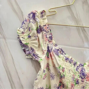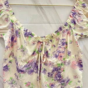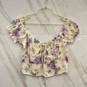 New without tag, ABOUND Off Shoulder Floral Purple Multicolored Crop Top Blouse Size Medium Back Smocked