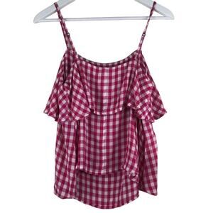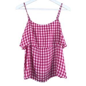 ABOUND Pink Checkered Tiered Spaghetti Strap Tank NWOT Picnic Summer Small