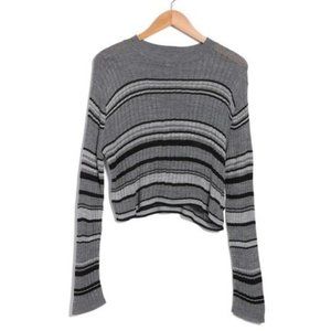 ABOUND Ribbed Cropped Sweater in Black / Grey Stripe NWT