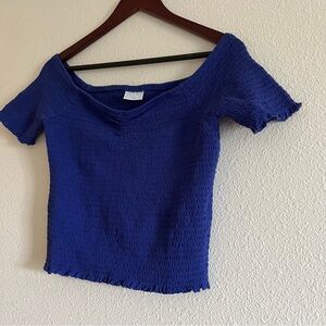 ABOUND Royal Bight Blue Off the Shoulder Cropped Smocked Top Size Large