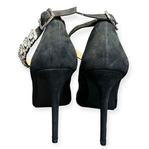ABOUND Women’s Black Suede Rhinestone Ankle Strap Pointed Toe High Heel Pumps Si