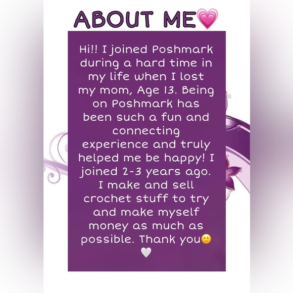 This is a little bit about me just incase people wanna know!! I hope to keep having fun in Poshmark🤍
