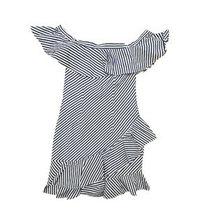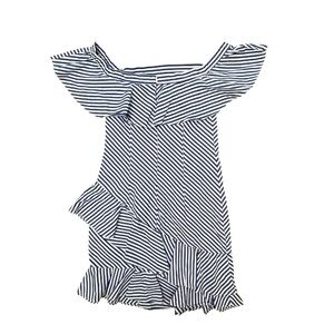 ABOUT US Revolve Rosa Bright Blue White Striped Ruffle Off Shoulder Dress Sz XS
