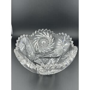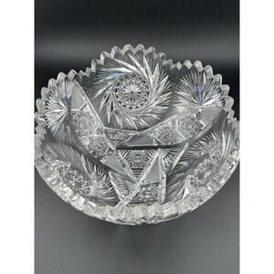 ABP Antique Cut Glass Bowl 8.5" Sawtooth Pinwheel Design- Minor Damage-