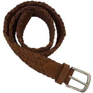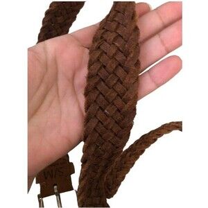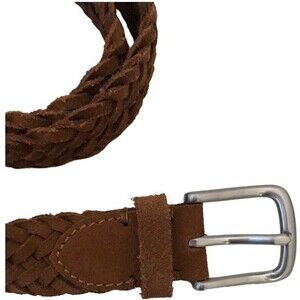 Classic Abercrombie & Fitch braided belt in size S/M. Made from genuine suede leather in a rich brown shade, this versatile accessory features a woven design with a sturdy silver-tone buckle. Perfect for pairing with jeans, shorts, or casual outfits for a timeless look. Pre-owned and in great condition.