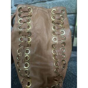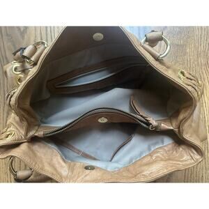 ABRO Tan Italian Leather Satchel with Gold Rivets Interior Pockets Handbag