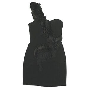 ABS Allen Schwartz Black Cocktail Party Dress Size 4 One Shoulder Ruffle Elegant