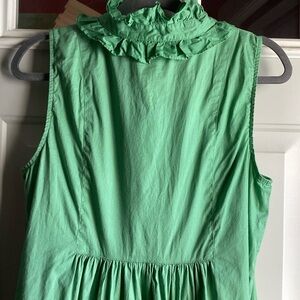 ABS Allen Schwartz Green Sleeveless Cotton Dress With A Ruffled Neckline Size12