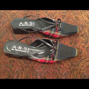 Snappy little mules, made in Italy. Fabric toe is black, blue, red, yellow, & white plaid. Heel is 1.5". Worn only a few times, but bottom of soles is scratched. I scratched them to add some grip. I never thought I'd be selling them and never imaged an app like Posh. Uppers and heels are still immaculate!!