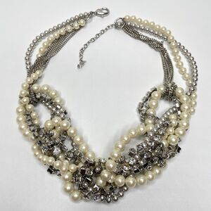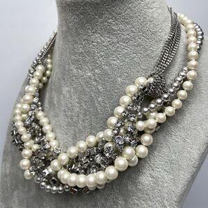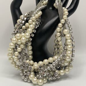 ABS Allen Schwartz Statement Glass Pearl Rhinestone Silver Tone Necklace Bold