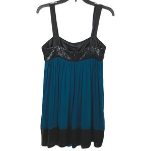 A.B.S. Allen Schwartz Collection Blue Silk Black Sequins Mini Dress Size 6