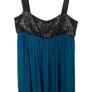 A.B.S. Allen Schwartz Collection Blue Silk Black Sequins Square Mini Dress Size 6