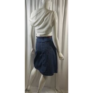 Made of 100% cotton denim, this skirt is machine washable and features stretch for added comfort. It also has pockets for convenience. The skirt is available in size 30 and fits a regular size type. It is perfect for the summer, fall, and spring seasons. The skirt is not handmade and is not vintage.