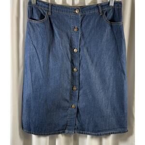 ABS Button Knee Length Denim Skirt, Indigo Denim, Sz: 30, 64-55