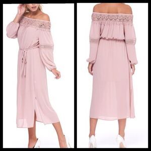 ABS Collection Mauve Long Sleeve Off Shoulder Midi Dress Medium NWT