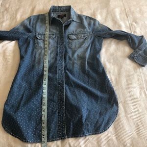 ABS Denim Collar Shirt with Star Print ⭐️ longer length with side detail and factory fading.