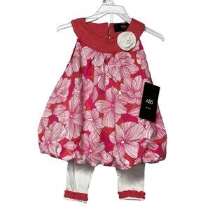 ABS KIDS BABY GIRL TWO PCS OUTFIT SET DRESS & WHITE LEGGING 18MOS NEW WITH TAG