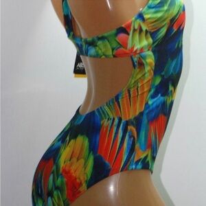 ABS One Piece Assymetrical Tropical Floral Swimsuit Size 8