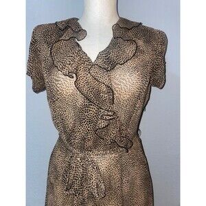 ABS Vintage Y2K Chiffon Animal Print Dress size 8P Ruffled Tie Waist Fairy Boho