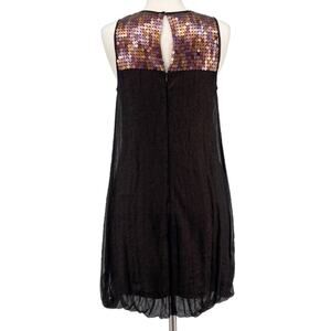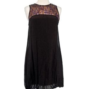 ABS Womens Brown Sleeveless Silk Dress Balloon Hem Sequined Bodice Size 6 New