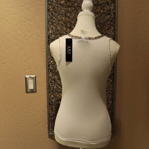 New With Tags. V Neck Tank Top with Large Rhinestones and Beaded Embellishment.