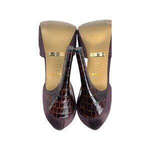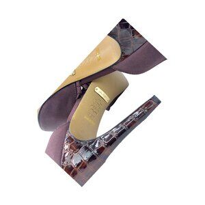 Elegant and unique, these ABS by Allen Schwartz Collection heels are perfect for weddings, cocktail parties, or a night out. Designed with a deep purple satin finish, croc-embossed stiletto heel, and amber jewel accent at the toe for a touch of glam.