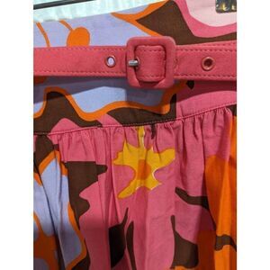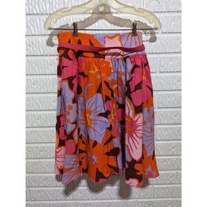 A.B.S. by Allen Schwartz Women's Orange Purple Floral Belted Full Skirt Size 2