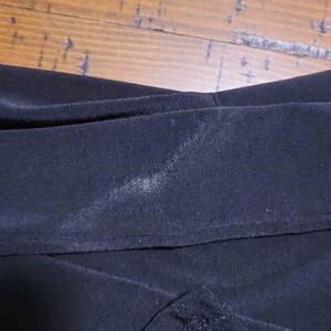 This is a black ABS Allen Schwartz 3/4 sleeve midi wrap dress with a ruffle neckline and ruffle cuffs. This dress measures 40.5 inches from shoulder to hem, 16.5 inches from armpit to armpit, and 18 inches from shoulder to the end of the sleeve. This dress is preloved with a stain and fabric piling that are pictured.