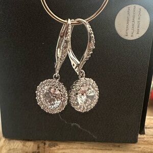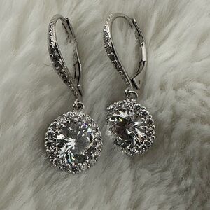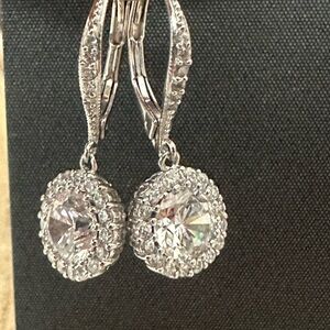 ABSOLUTELY EXQUISITE 4 CT ROUND STONE DROP STYLE EARRINGS W DECADENT PAVE BORDER