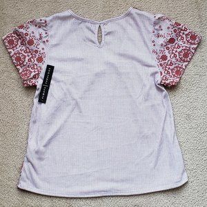 ABSOLUTELY FAMOUS Embroidered Smocked Peplum Top
