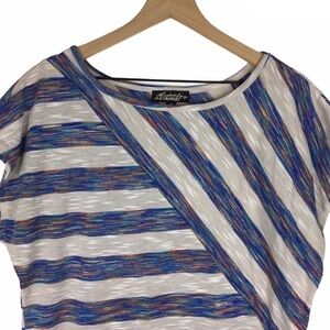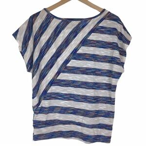ABSOLUTELY FAMOUS Top Stripe Heathered Space Dye Asymmetrical Woven Size Medium