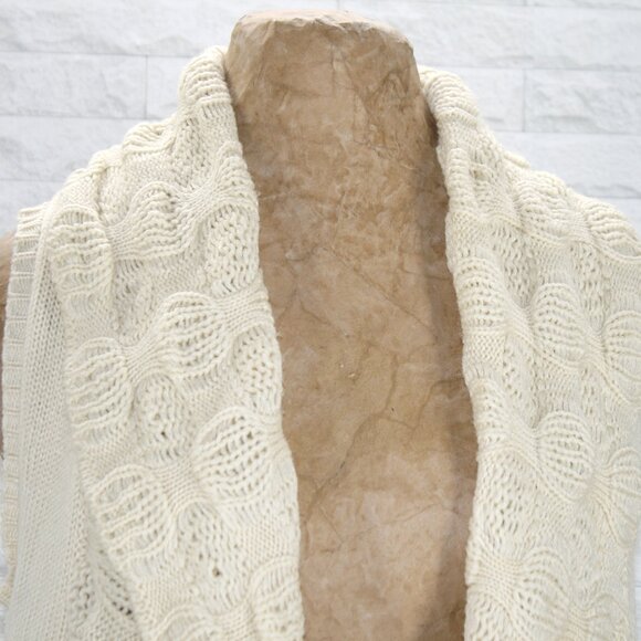 ABSOLUTELY FAMOUS Vest Knit Long Boho Shrug Neutral Statement Collar Cream Large