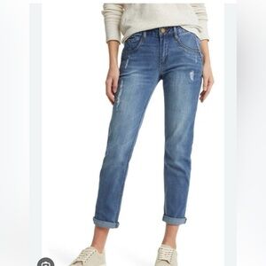 With trouser-style side pockets for added versatility, these stretchy jeans flatter thanks to Ab-solution shaping panels that comfortably sculpt your curves. Style Name: Wit & Wisdom Ab-Solution Side Pocket Girlfriend Jeans (Blue Vintage) (Regular & Petite) (Nordstrom Exclusive).