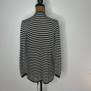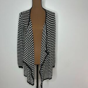 AB Studio, Fly Away Waterfall Draped Black White Striped Cardigan Women’s Medium