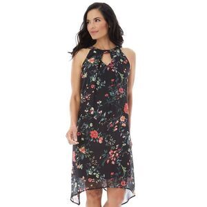 AB Studio Print Handkerchief Shift Dress Black Floral-LARGE