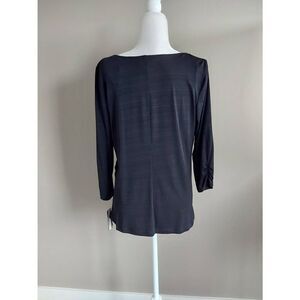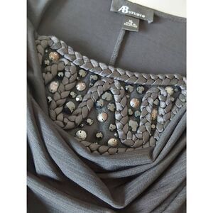 AB Studio Top Size XL Black Drape front with beautiful braid and beaded inset 3/4 length sleeves Scoop neck Measurement is shown