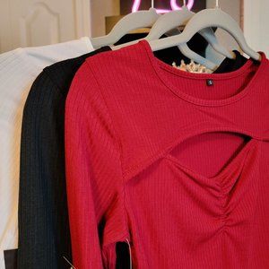 Be comfortable yet fashionable in this Stretchy & Soft Ribbed Knit Keyhole Bodysuit.