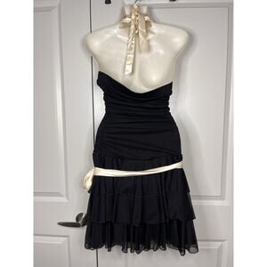 A.Byer Y2K Dress Ruched Halter Tiered Ruffle Hem Fairycore Size M