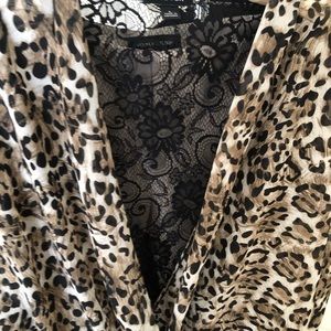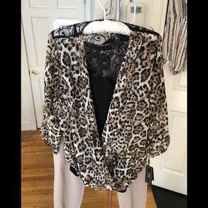 A.Byer size LG - XL leopard print faux wrap black lace back long sleeve NWT