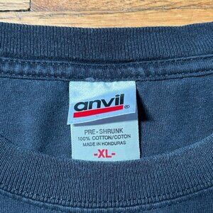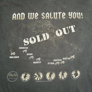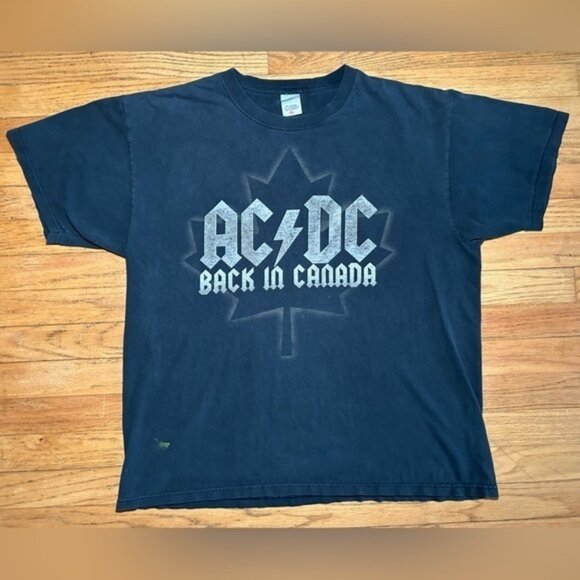 Sweet AC/DC graphic tee from their 2009 Canadian leg of their Black Ice World Tour! Double sided faded graphics, on an Avnil XL tee. Shows signs of wear, small paint mark on the bottom front.