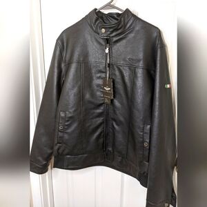 AC Luxury Collection Italian Vegan Leather Jacket Black Lined Men's Size XL NWT