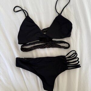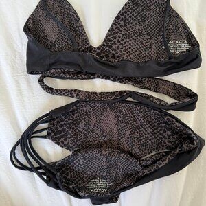 ACACIA Black & Animal Print Strappy Bikini Set Size Small - Good Condition