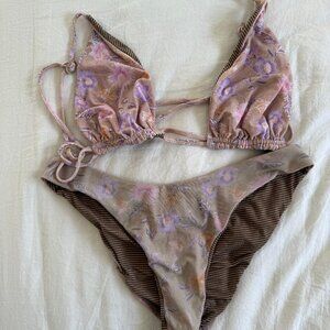 ACACIA Floral Bikini Set Size Medium (Top), Small (Bottom) - Good Condition. The bottoms are different color