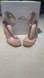 ACATA SZ 5.5 Rhinestone Straps & Open Toe Tan Suede High Heels Zip Back NWT