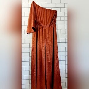 ACCENT PRONE THE LABEL Ladies One Shoulder Jumpsuit Elastic Waist Wide Leg Light Weight