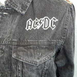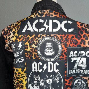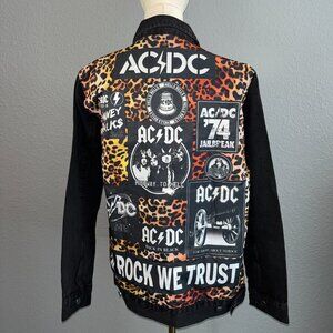 AC/DC In Rock We Trust black/leopard print denim jacket. Size US S. Oversized fit.