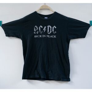 ACDC AC/DC Back In Black Distressed Logo Band Tee Metal Rock Men's T-Shirt Size M