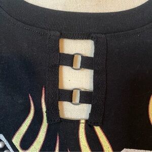 New with tags cropped AC/DC black tee. Highway to hell graphic with fire. Size large. See pics for approximate measurements