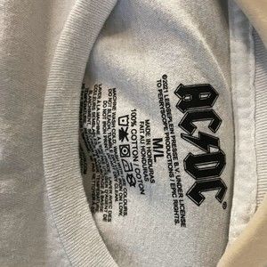 Copyright 2021 AC/DC Leidseplein Presse B.V. Under License to Perryscope Productions/Epic Rights. 100% Cotton. Back in Black 1980 US Tour. White with Black and White US Flag. Size M/L. Chest 20" Length 28".