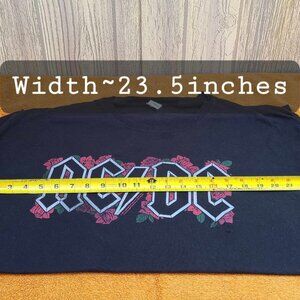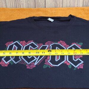AC/DC Band Logo Men's Black T-SHIRT 3XL Red Roses Behind AC/DC band logo